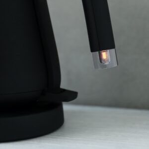 本体は高級感のあるアイアンのような質感で、表面は少しザラ付きのあるマットな手触りです。一見電気ケトルとは思えないようなスタイリッシュなデザインは、キッチンに置いておくだけでおしゃれさを演出してくれます。